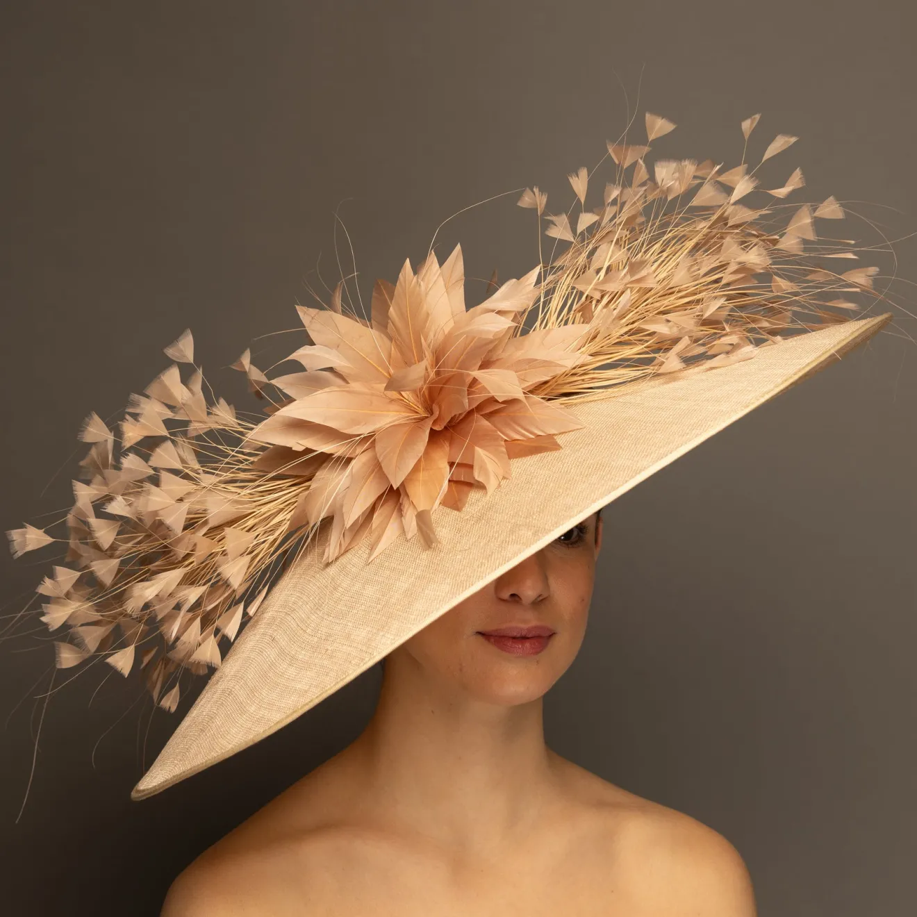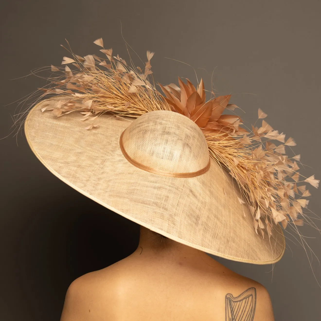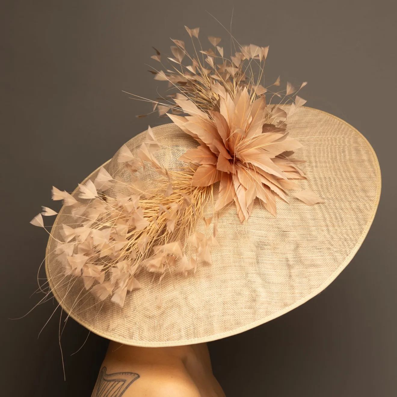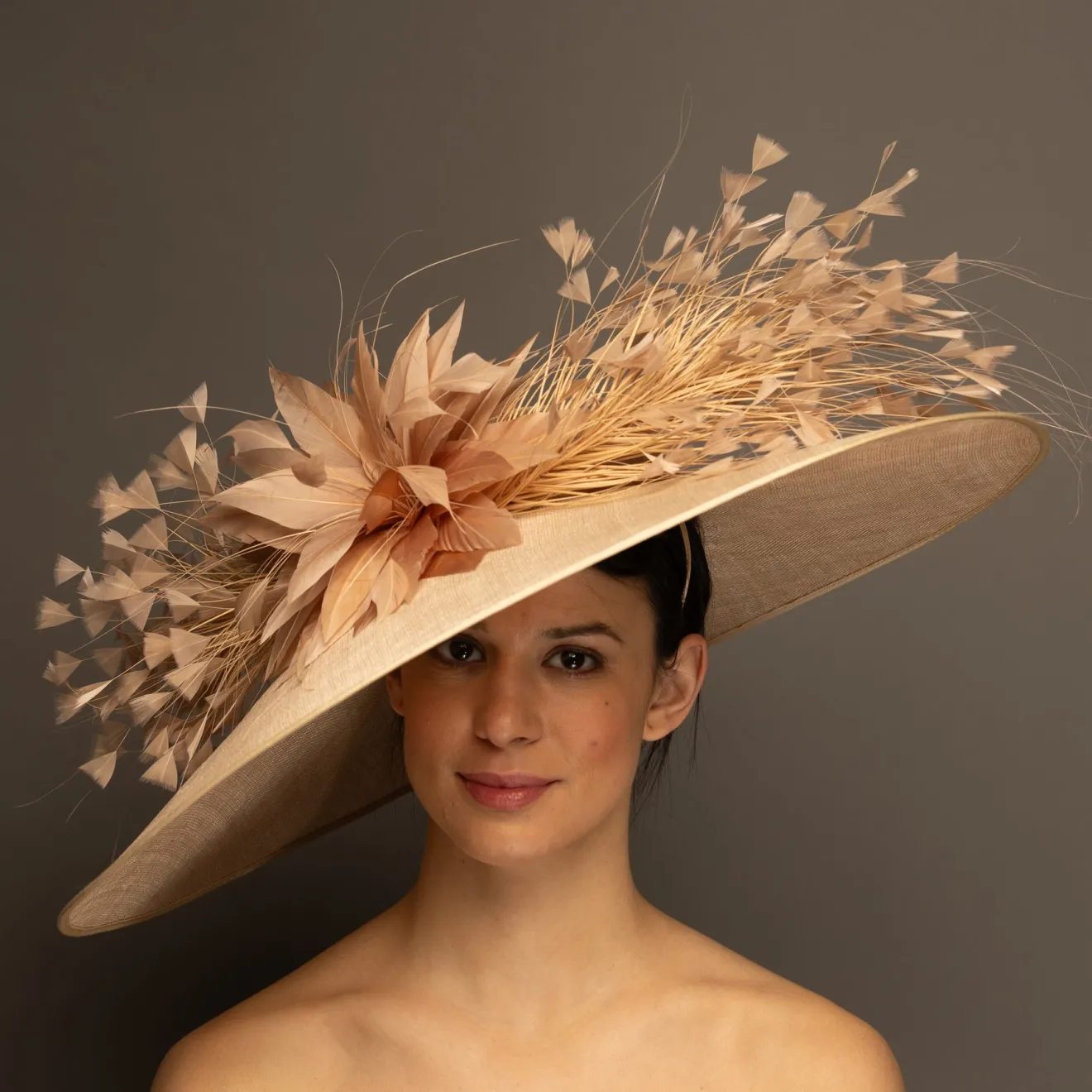 This style is a hatinator. A hatinator is a hybrid of a HAT & FASCINATOR. The hat is secured on your head by a thin headband. Typically a hatinator “base” will have a shallow crown, which is why you need the headband to securely keep it on your head. A hatinator will give you the illusion of a hat with the comfort of a fascinator!