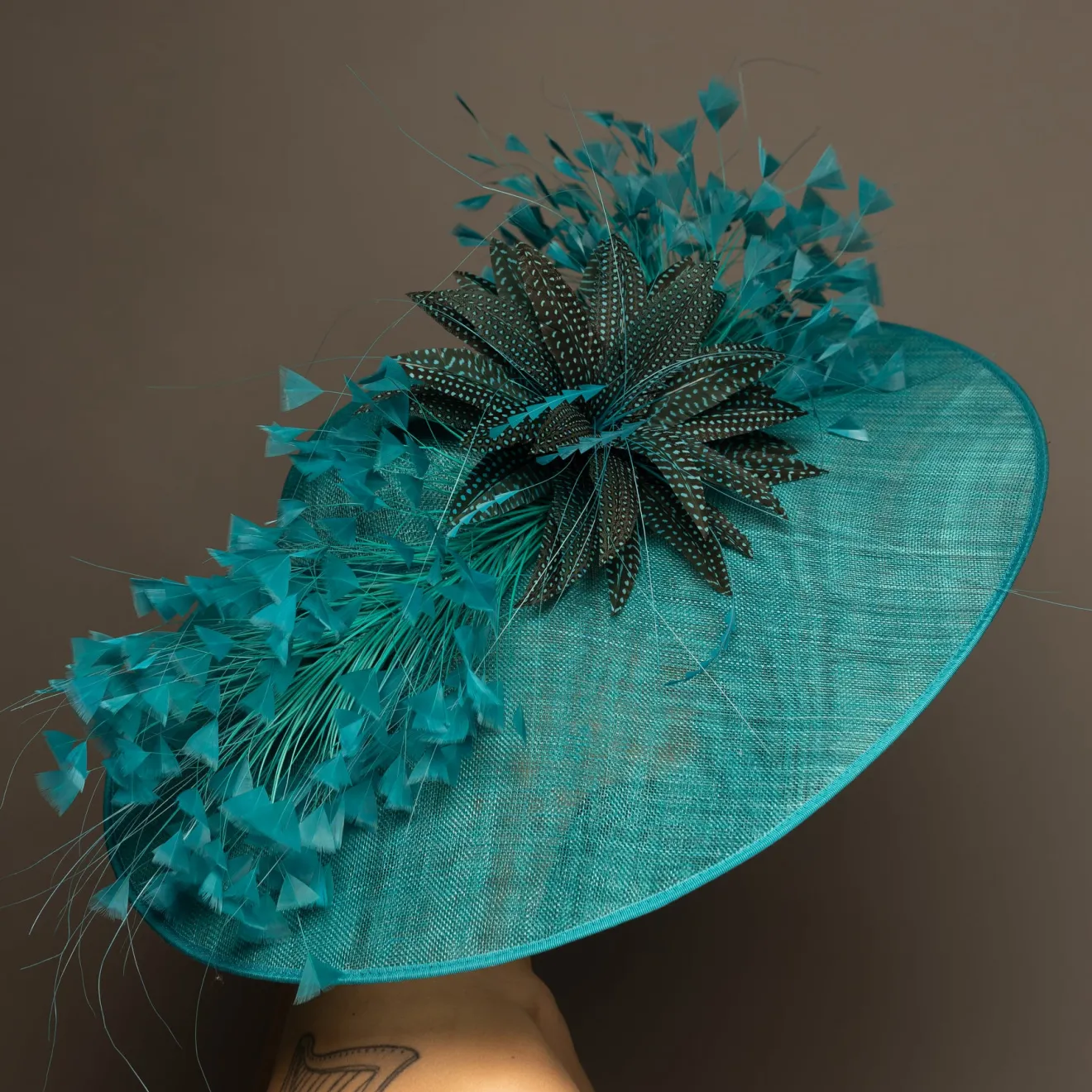 This style is a hatinator. A hatinator is a hybrid of a HAT & FASCINATOR. The hat is secured on your head by a thin headband. Typically a hatinator “base” will have a shallow crown, which is why you need the headband to securely keep it on your head. A hatinator will give you the illusion of a hat with the comfort of a fascinator!
