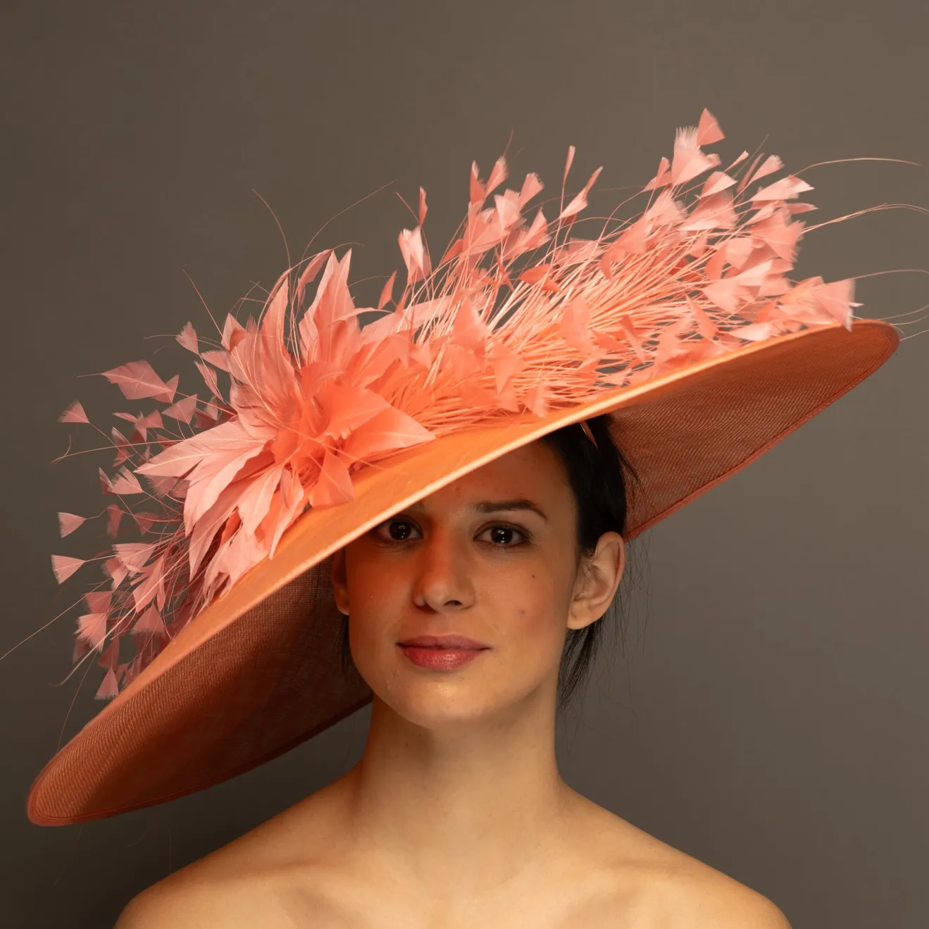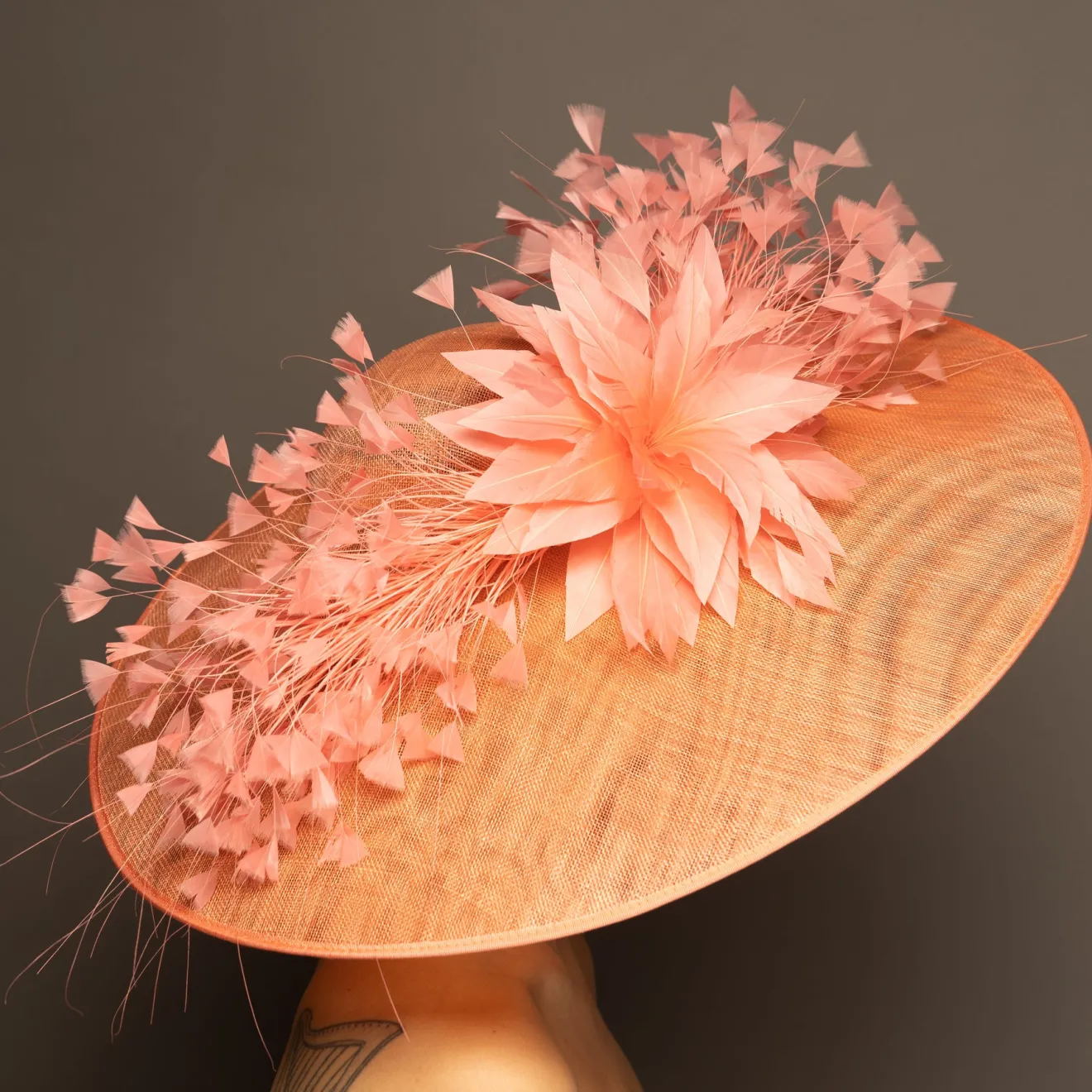 This style is a hatinator. A hatinator is a hybrid of a HAT & FASCINATOR. The hat is secured on your head by a thin headband. Typically a hatinator “base” will have a shallow crown, which is why you need the headband to securely keep it on your head. A hatinator will give you the illusion of a hat with the comfort of a fascinator!