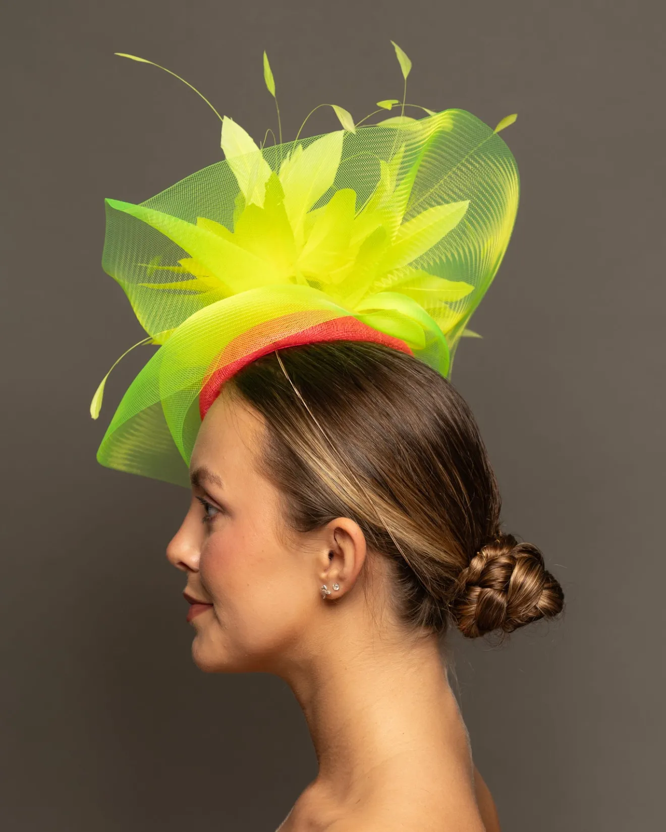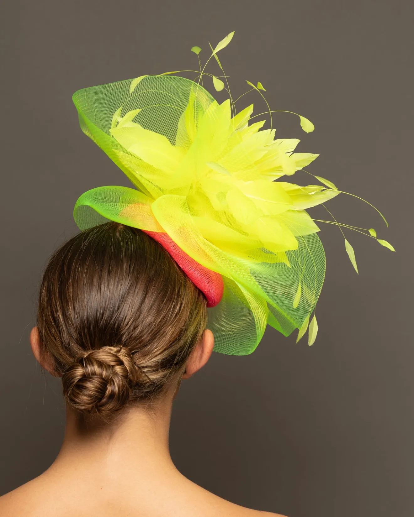 Category: Fascinators Tags: HIGHLIGHTER YELLOW & NEON PINK, THE HAT GIRLS